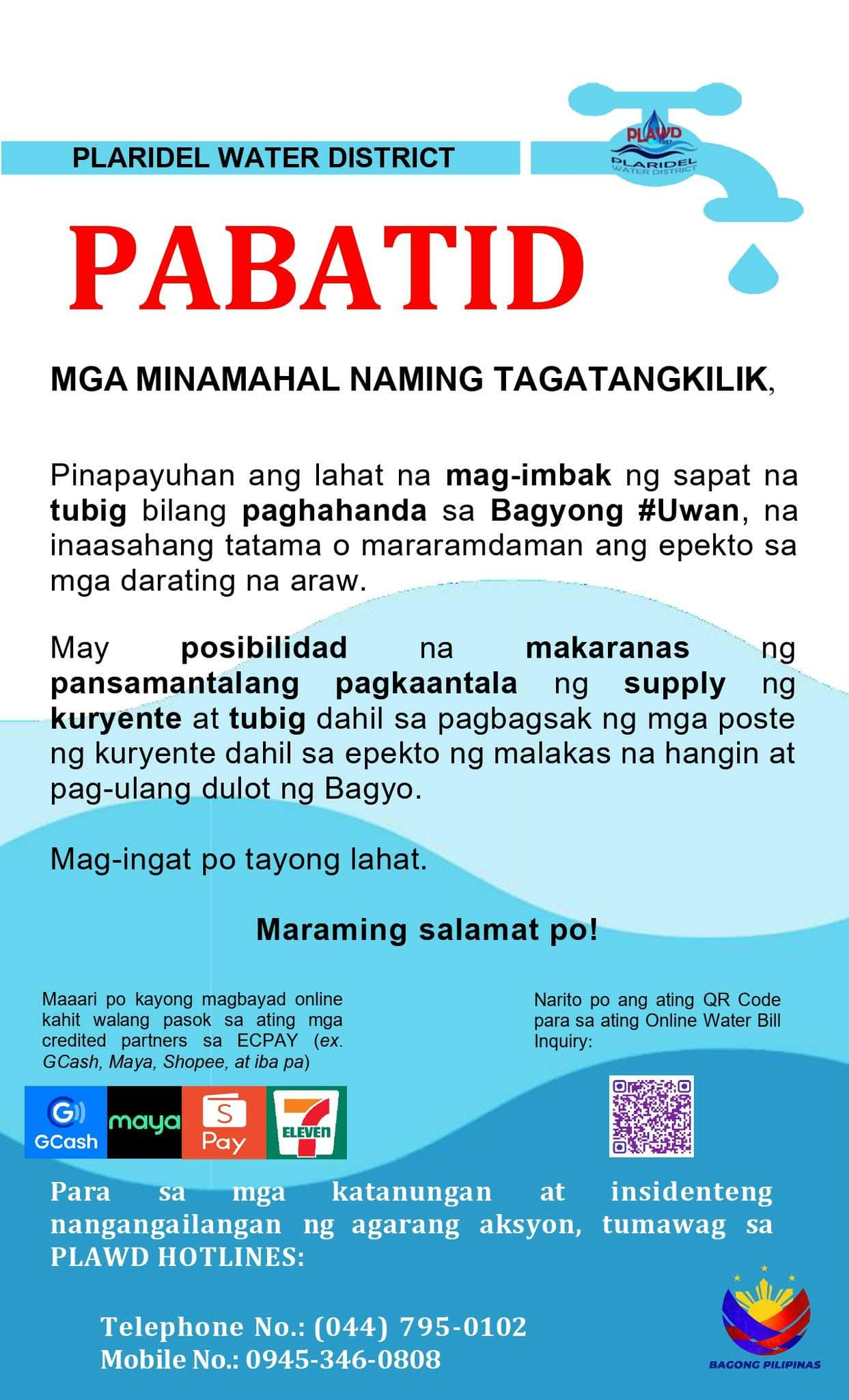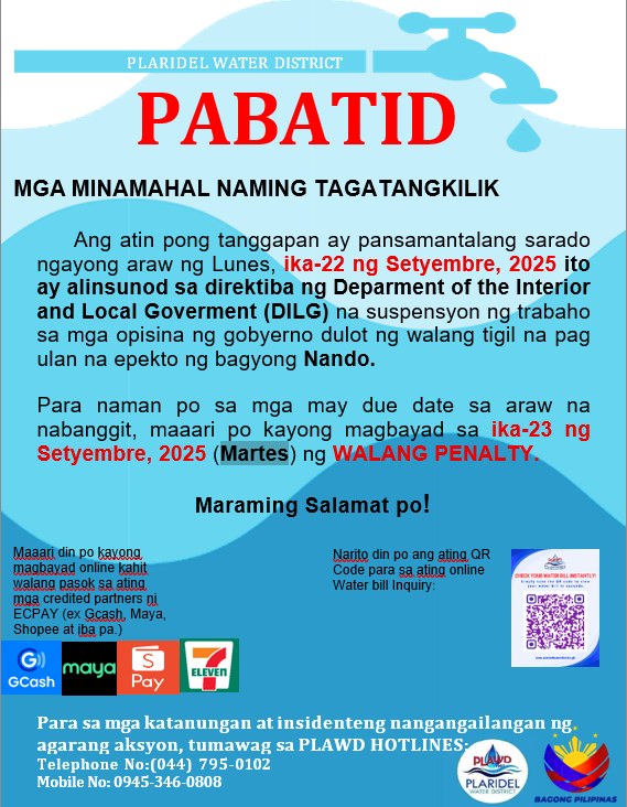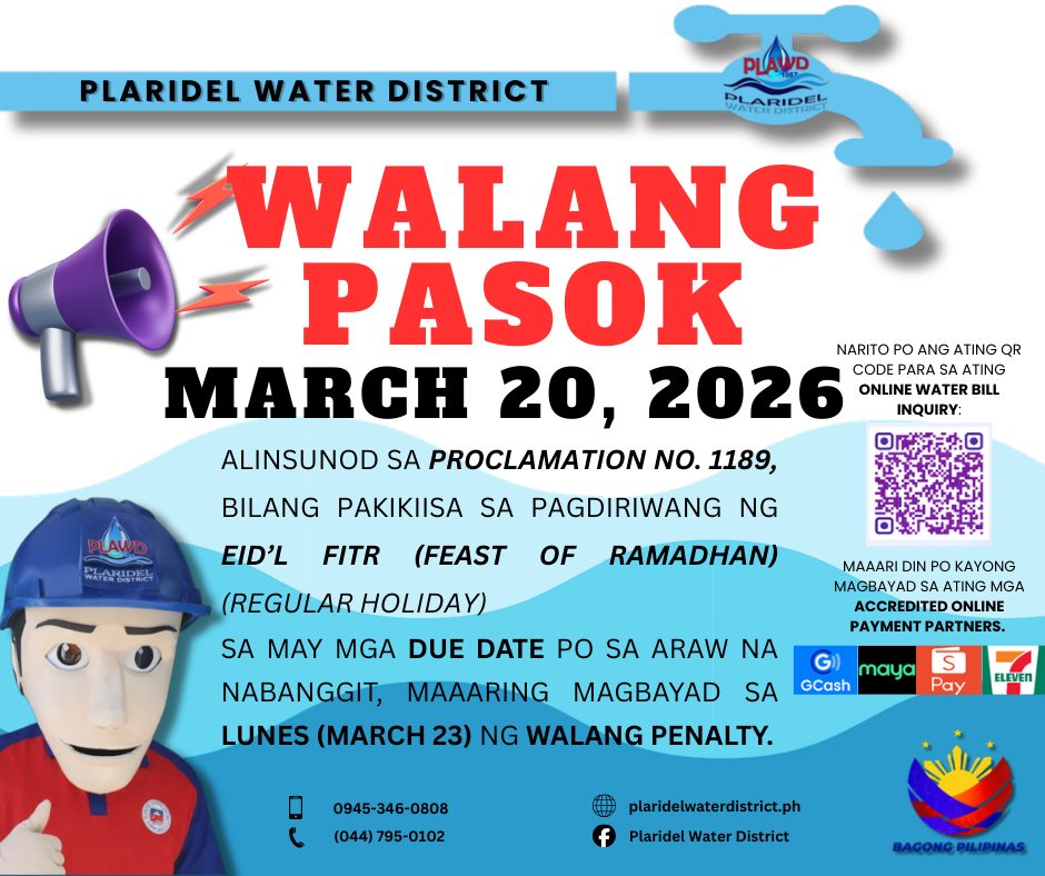 Stay updated with the latest news, events, and important information from Plaridel Water District. Check this section regularly to keep yourself informed about our latest announcements and updates.